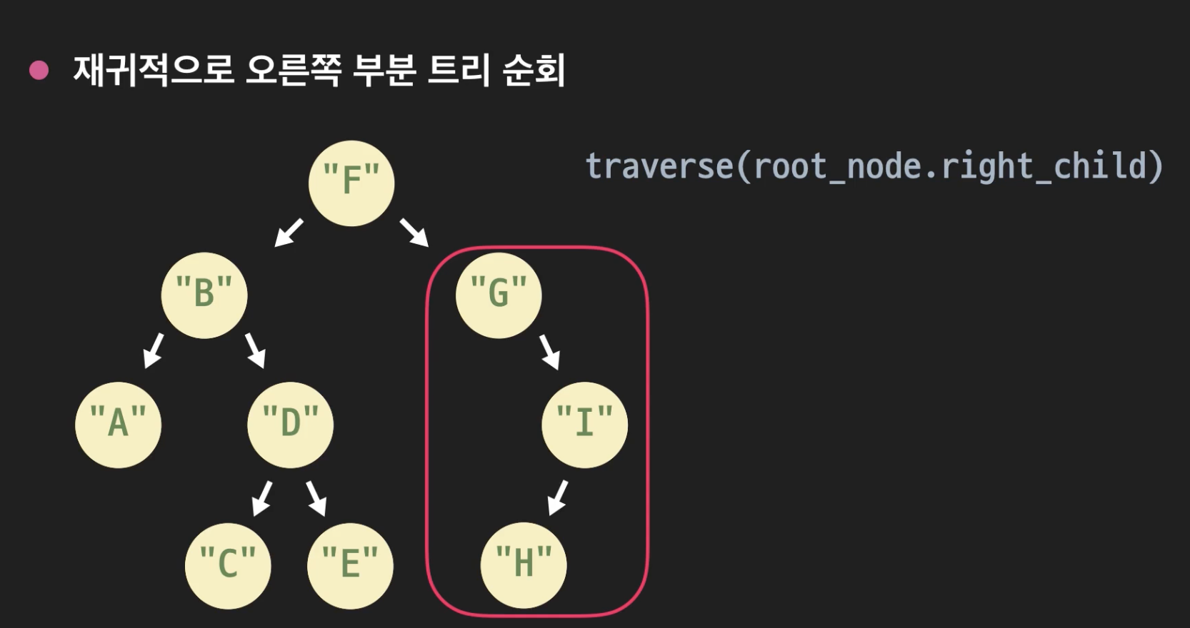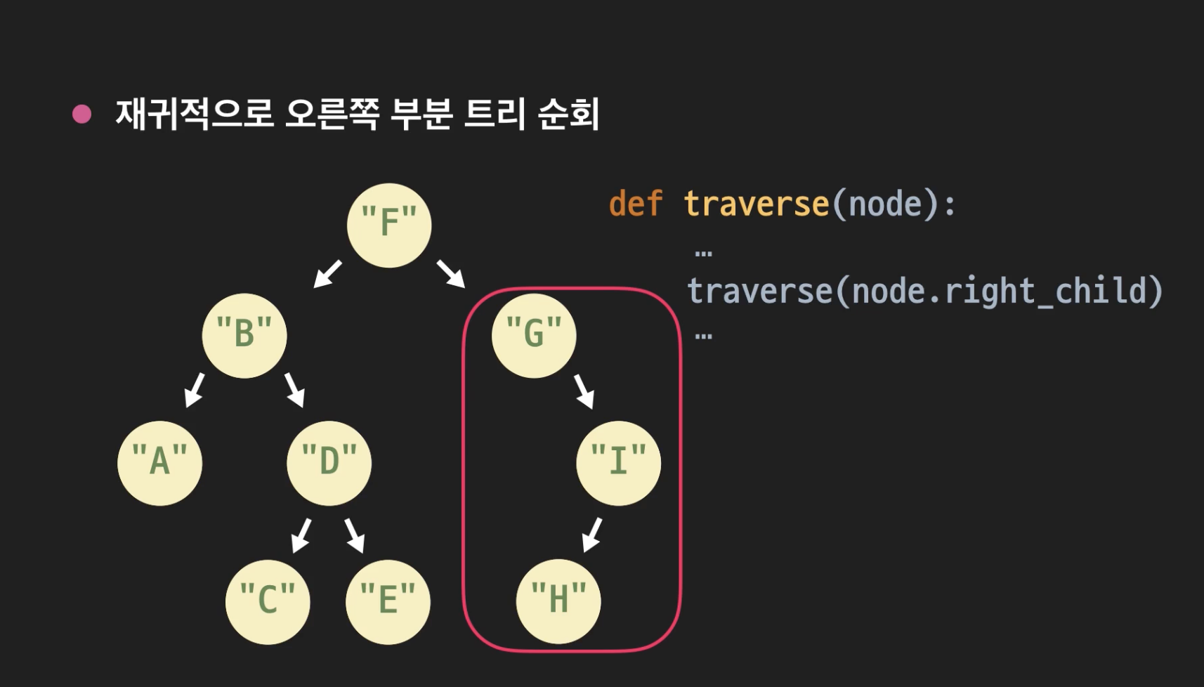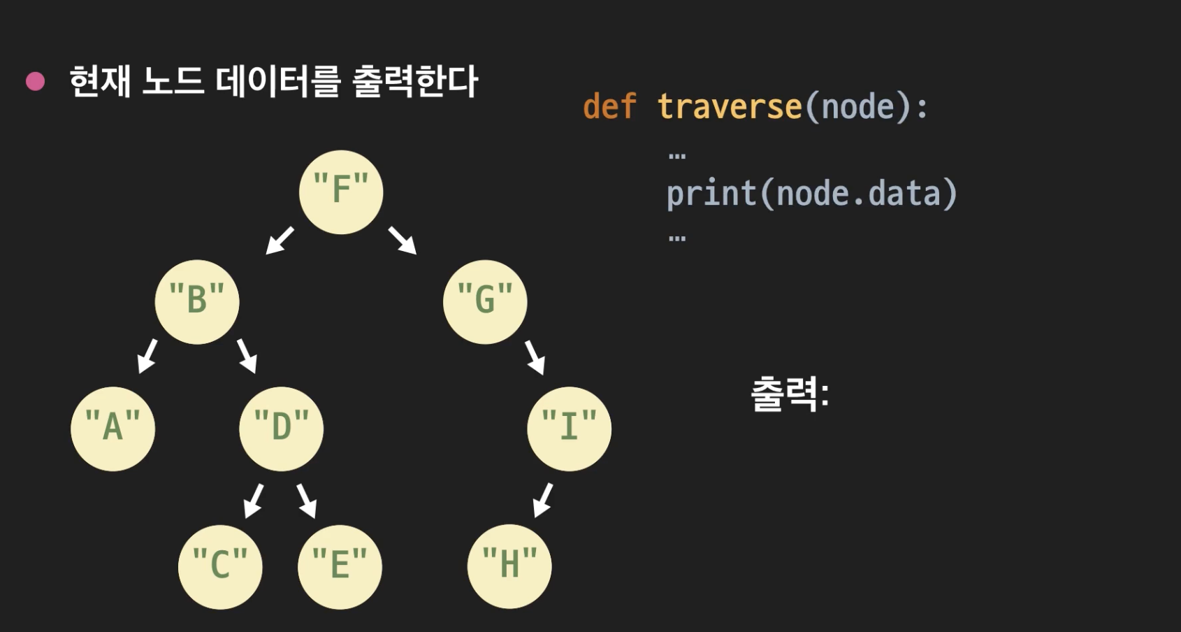 - 위의 함수 traverse는 순회하고싶은 트리의 root 노드를 입력값으로 받는다.