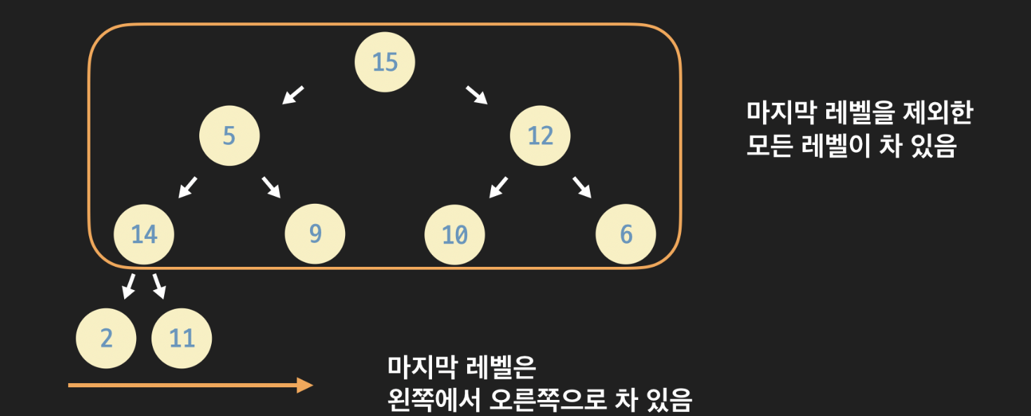 → 마지막 레벨 직전의 레벨까지는 모든 노드들이 다 채워져있음