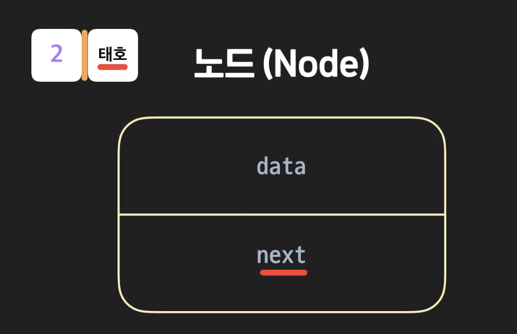 - 링크드 리스트는 노드라는 단위의 데이터를 저장하고, 데이터가 저장된 각 노드들을 순서대로 연결시켜서 만든 자료구조