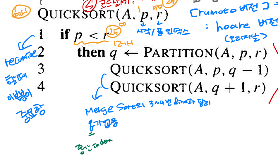 - p >=r이면 배열의 크기가 1 이하이므로 이미 정렬된 상태