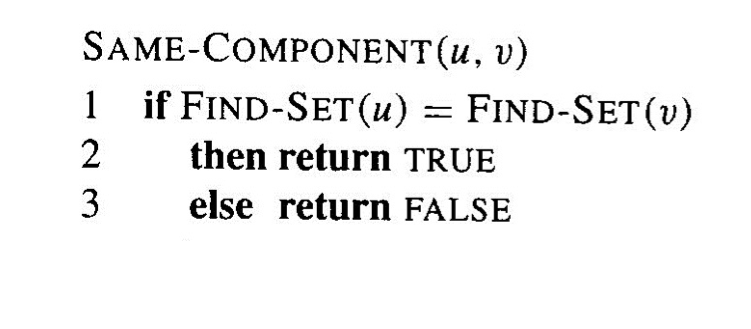 - find-set(u)와 find-set(v)의 결과를 비교합니다.