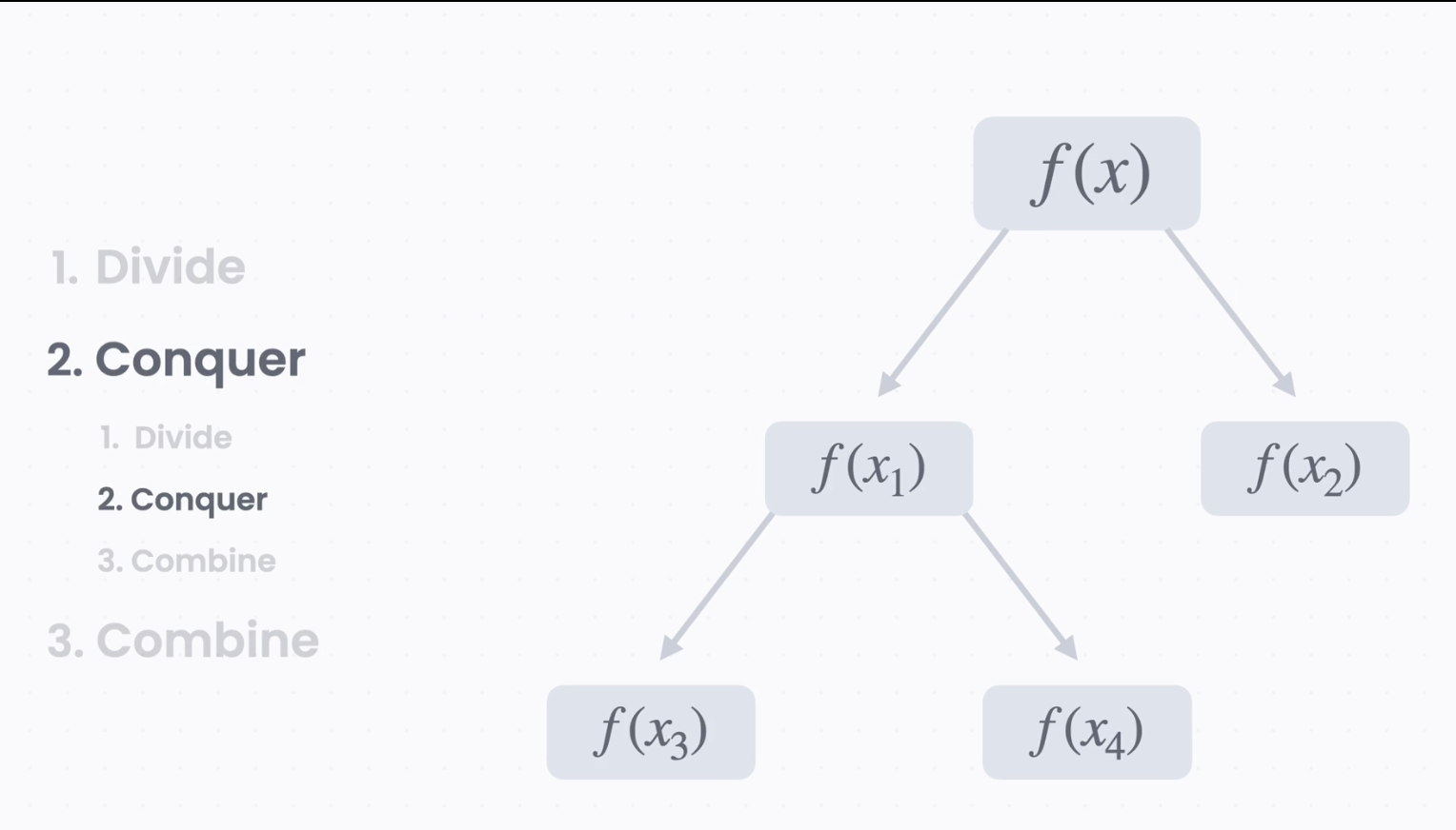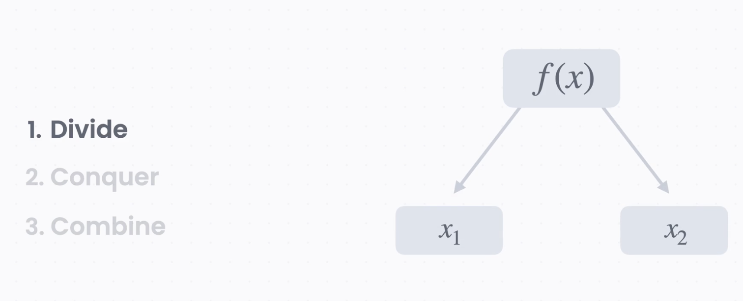 - f는 파라미터로 인풋 x를 받는데, 이 문제는 단순하게 해결이 안되어 Divide & Conquer를 사용하고 싶음